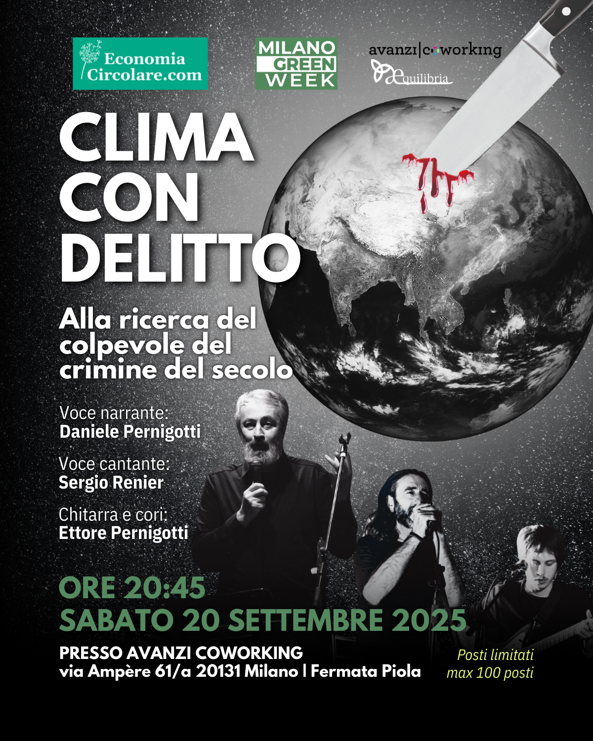 Col sostegno di EconomiaCircolare.com, nella suggestiva location di Avanzi Coworking, proponiamo il nostro spettacolo Clima con delitto, offrendo un'immersione nella scienza del cambiamento climatico.