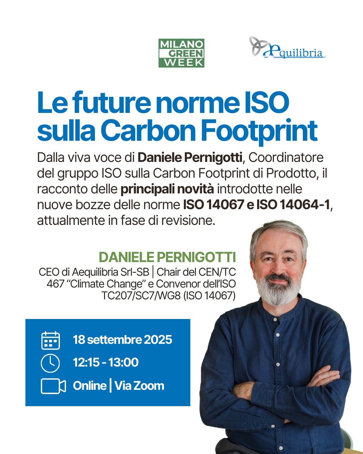 Dal Convegno di Confindustria Novara Vercelli Valsesia, Daniele Pernigotti introdurrà le novità in cantiere rispetto alle norme internazionali sulla Carbon Footprint, nello specifico ISO 14064-1 e ISO 14067, di cui è attualmente coordinatore del gruppo di lavoro ISO incaricato alla revisione.